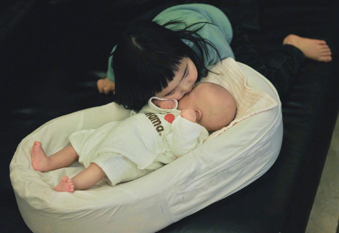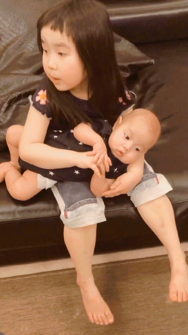 Cô bé 6 tuổi nay đã trở thành chị cả trong nhà vì mẹ sinh thêm em. Trong nhiều bức ảnh, Tiểu Man ra dáng chị gái khi cùng em chơi đùa, trông chừng em giúp mẹ. |