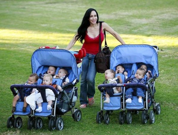 Năm 2008, Natalie tiếp tục cấy ghép phôi thai và thật bất ngờ khi lần này cô mang thai 8 đứa trẻ và các bé lần lượt chào đời khỏe mạnh. 8 đứa con được Natalie đặt tên lần lượt là Mali, Noah, Nariyah, Isaiah, Josiah, Makai, Jeremiah và John. Cô được mệnh danh là Octomom (tạm dịch: bà mẹ sinh 8). Tổng cộng, Nadya có 14 đứa con. |