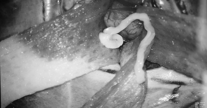 Sán nhái dài 7 cm trong não người đàn ông. Ảnh: Vnexpress. |