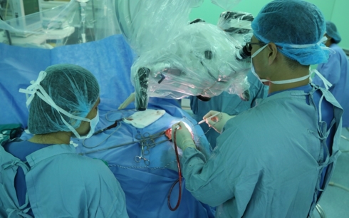 Ca phẫu thuật gắp sán nhái trong não bệnh nhân. Ảnh: VOV. |