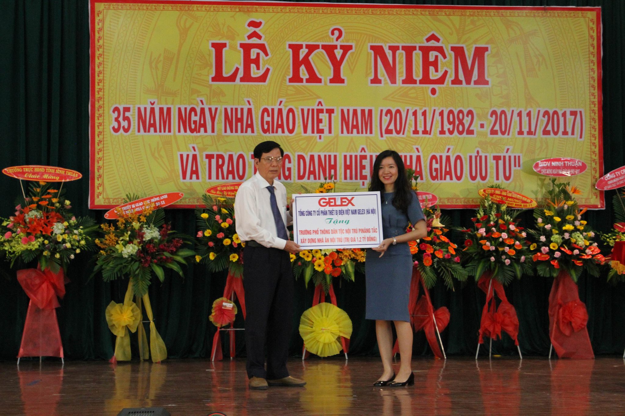 Tài trợ xây dựng bếp ăn cho trường phổ thông dân tộc nội trú Pinăng Tắc, huyện Bắc Ái, tỉnh Ninh Thuận là một trong những hoạt động an sinh xã hội của GELEX, là nét đẹp truyền thống song song với hoạt động sản xuất kinh doanh của Tổng công ty. Nhân lễ kỷ niệm 35 năm ngày Nhà giáo Việt Nam (20/11/1982 – 20/11/2017), Sở Giáo dục và Đào tạo tỉnh Ninh Thuận đã trao tặng Giấy khen cho Tổng công ty cổ phần Thiết bị Điện Việt Nam đã đồng hành cùng ngành Giáo dục của tỉnh.