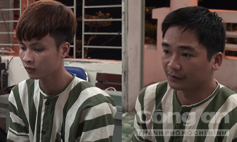 Đặng Văn Mùa (trái) và Vũ Văn Quang tại cơ quan công an (Ảnh: Công an TP.HCM) |