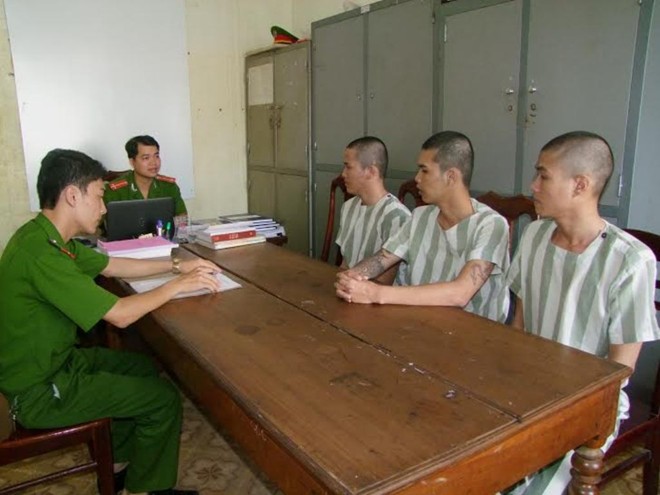 Các nghi can tại cơ quan công an. Ảnh: Tri Thức trực tuyến |