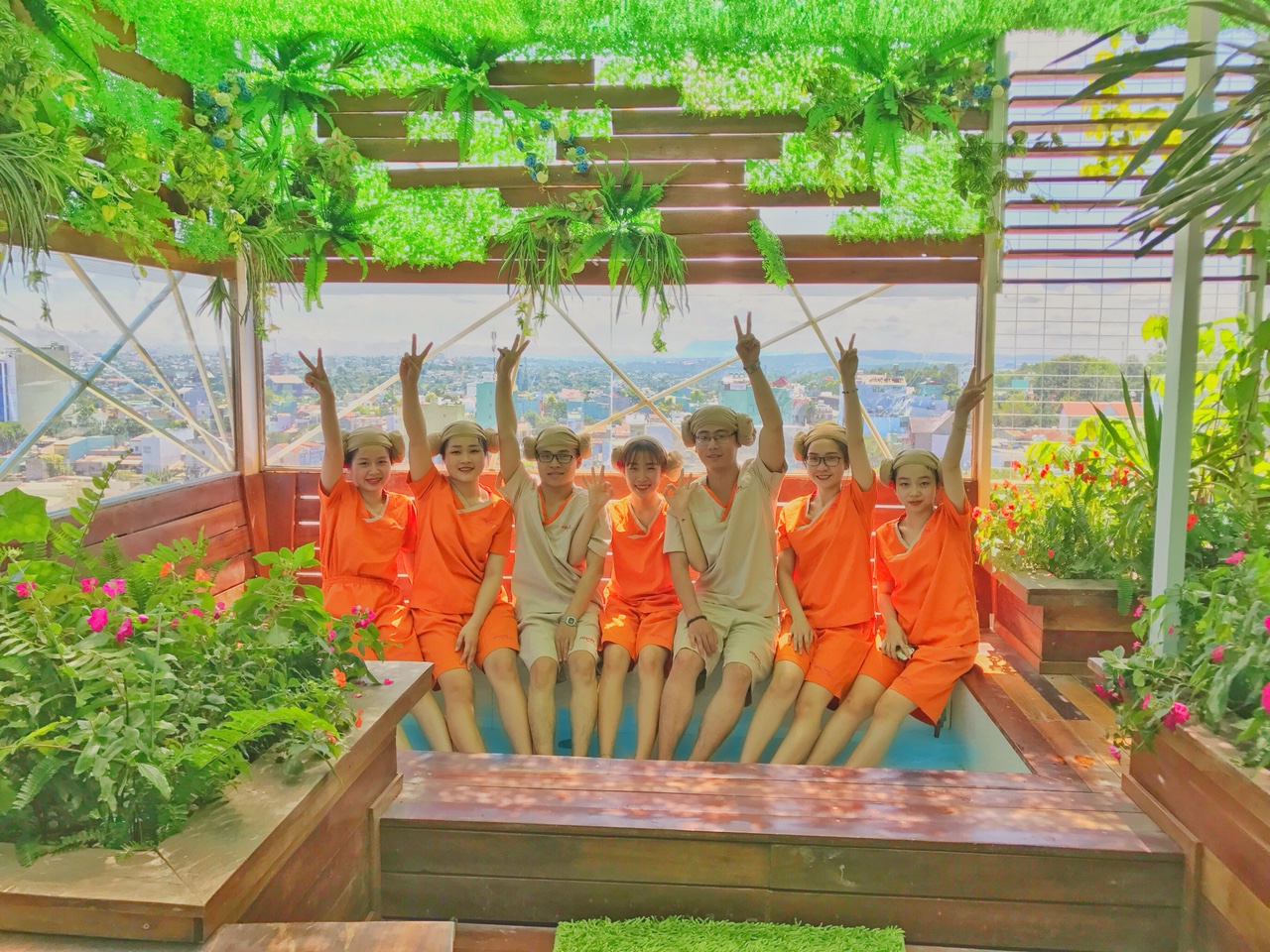 Chị Nguyễn Thị Hồng (trú tại TP Pleiku, Gia Lai - ở ngoài cùng bên trái) và đồng nghiệp thư giãn tại AN AN Jiim Jil Bang Spa |
