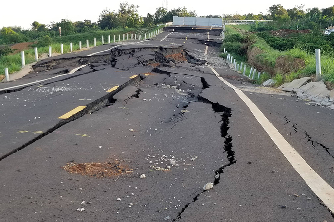 Đoạn đường tránh bị sụt lún sau trận mưa tháng 9/2019. (Ảnh: VNE) |