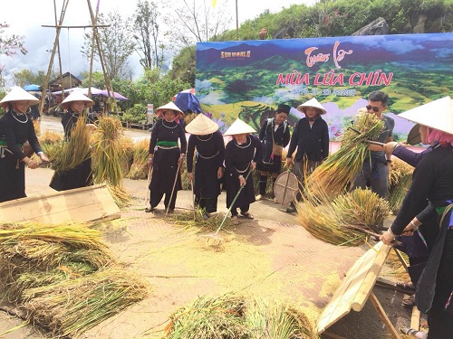 Giữa tiết trời thu se lạnh của Tây Bắc, cả không gian khu vực ga đi cáp treo bừng lên trong những điệu khèn, câu hát, trong rộn ràng phiên chợ miền cao, với màu vàng óng của rơm, của những bó lúa đã trĩu hạt mới được gặt về. Du khách sẽ thử đập lúa dưới sự hướng dẫn của bà con Tây Bắc, để cảm nhận niềm hạnh phúc được thấy những hạt vàng tròn căng rơi xuống, thấy mùa ấm no mở ra trước mắt.