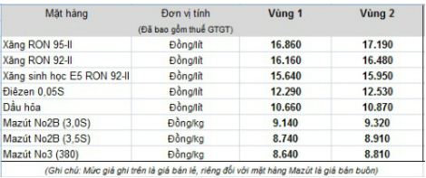 Mức cụ thể đối với các mặt hàng xăng dầu như sau: