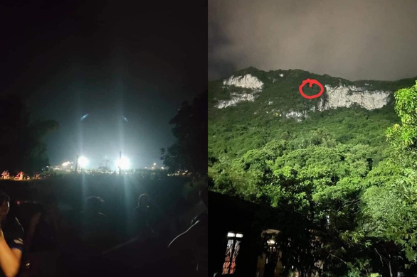 Phát hiện 2 học sinh mắc kẹt ở vách đá gần đỉnh núi, lực lượng chức năng cùng người dân đã dùng đèn sân vạn động để chiếu sáng và đưa các em xuống núi an toàn.