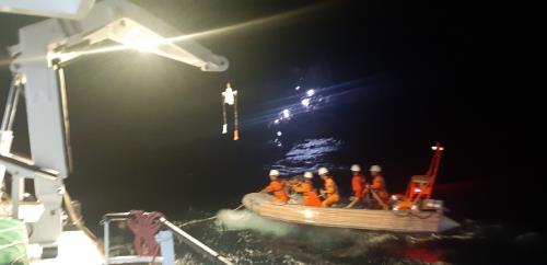 Vượt qua hải trình dài với tốc độ tối đa dưới điều kiện khắc nghiệt của thời tiết, rạng sáng 8/2, tàu QNa 90037 TS đã được lực lượng cứu nạn hàng hải tiếp cận và triển khai ứng cứu, 40 thuyền viên gặp nạn được chuyển lên tàu SAR 412 để được chăm sóc sức khỏe tích cực và trấn an tinh thần, tàu SAR 412 nhanh chóng triển khai công tác lai dắt tàu gặp nạn thoát khỏi khu vực nguy hiểm để bảo toàn tài sản cho bà con ngư dân.