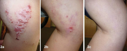 Quá trình điều trị được đánh giá dựa trên lâm sàng và các hình ảnh chụp lại vào tuần thứ 0, 1, 2, 4, 6, 8, 10, 12 và 14. Hai mươi tám bệnh nhân đã cho kết quả cải thiện đáng kể với tình trạng phát ban và ngứa ngay trong tuần điều trị đầu tiên và khỏi hoàn toàn vào tuần thứ 10-12. Chỉ có hai bệnh nhân, lần lượt là anh trai và em gái, có đáp ứng với điều trị chậm hơn và được ghi nhận là bị ngứa tăng lên.