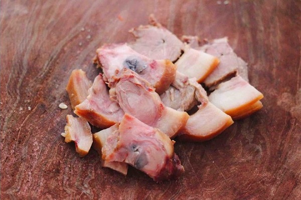 Thịt đầu lợn ngọt ngon, ăn kèm dưa chuột giòn giòn giúp chống ngán cực hiệu quả.