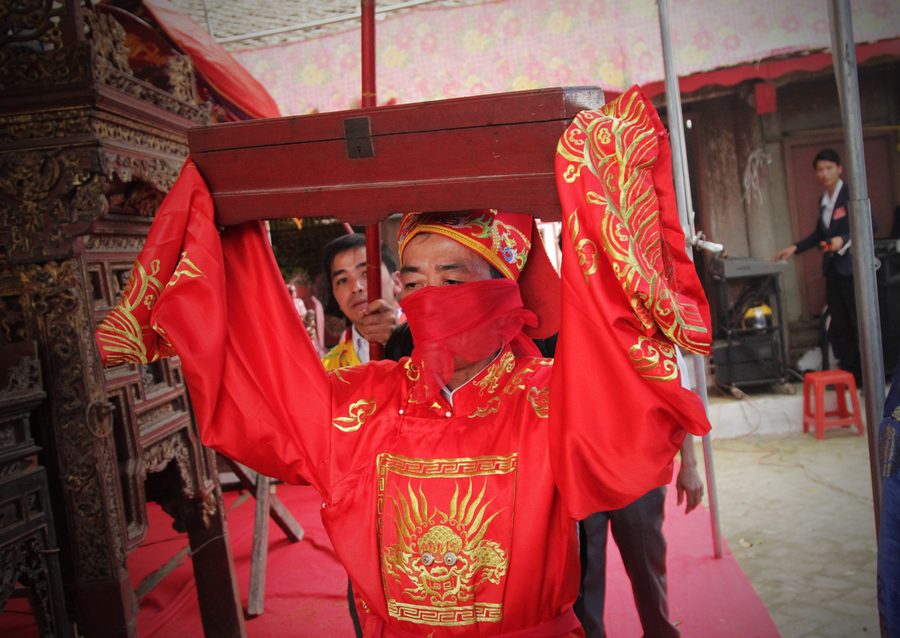 Vào khoảng 14h30, màn cướp phết bắt đầu diễn ra với không khí sôi nổi và náo nhiệt kèm theo những tiếng trống, những đoàn rước cờ.