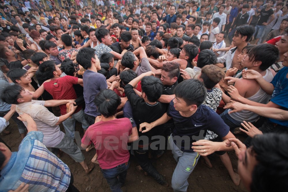 Người đứng ngoài thì reo hò cổ vũ để các thanh niên có thể nhanh chóng cướp được phết. |