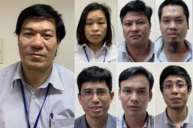 Giám đốc CDC Hà Nội Nguyễn Nhật Cảm cùng 6 đồng phạm vừa bị bắt. Ảnh: VietNamNet |