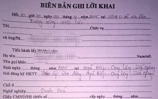 Biên bản công an xã Ea Tân, huyện Krông Năng ghi nhận sự việc anh Hùng bị đánh trong lúc mua sầu riêng. Ảnh: M. Qúy |