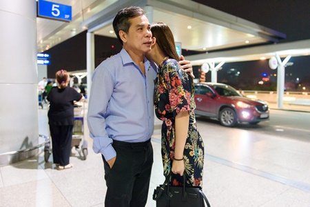 Không đi cùng vợ con nhưng bố Giang Hồng Ngọc cũng đã rất tất bật từ ngày hôm trước từ việc nhắc nhở con chuẩn bị đồ đạc cho chu đáo đến chuyện phải giữ gìn sức khỏe vì hiện Giang Hồng Ngọc đang bị viêm họng. Buổi sáng bố Giang Hồng Ngọc dậy sớm lái xe đưa vợ con đến sân bay, dặn dò từng li từng tí. Sự yêu thương của bố khiến Giang Hồng Ngọc xúc động ôm chặt bố lưu luyến không rời.