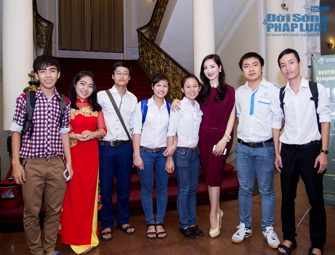| Giáng My chụp cùng những bạn trẻ cũng đến dự buổi hòa nhạc này. |