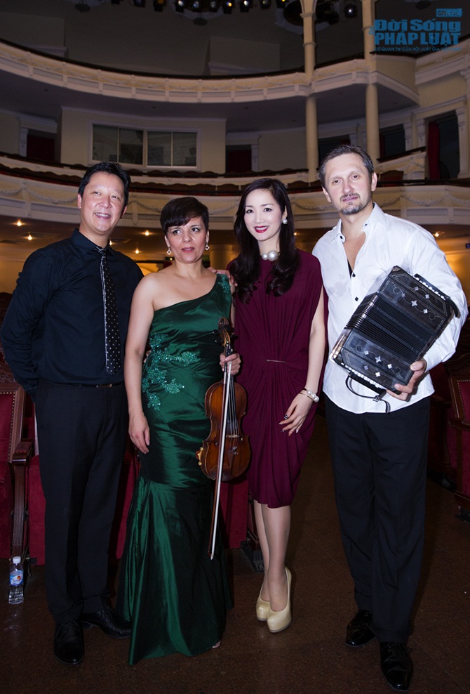 | Từ nhiều năm qua, Hoa hậu đã có mối quan hệ thân thiết với nhạc trưởng Lê Phi Phi nên dù khá bận với công việc, người đẹp vẫn cố gắng đến ủng hộ người bạn. |