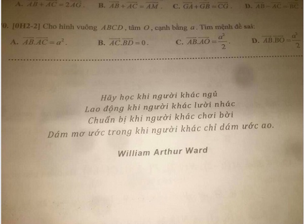 Minh chứng là cuối mỗi trang đề bài, thầy cô lại gửi gắm thêm 1 vài câu nhắc nhở nhẹ nhàng nhưng đầy thấm thía.