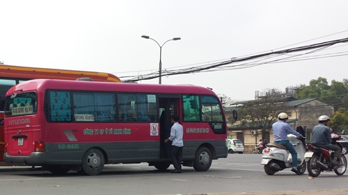 Xe khách dừng đón khách trên đường Kim Đồng. |