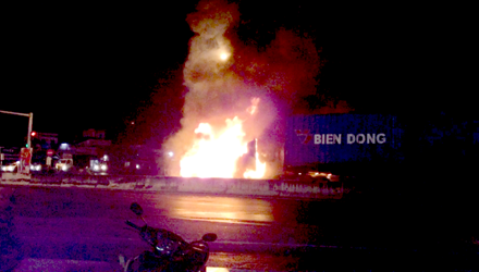 Sự cố cháy đầu xe khiến ngọn lửa bùng lên dữ dội trong đêm. |