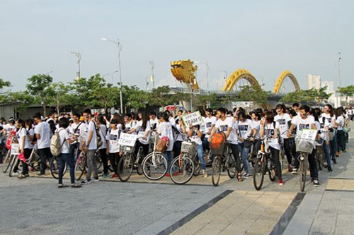 Xung quanh khu vực Hồ Gươm, thời điểm đèn tắt cũng là lúc những đoàn người bắt đầu diễu hành và cùng hát lên những bài hát về tiết kiệm điện, bảo vệ môi trường. |