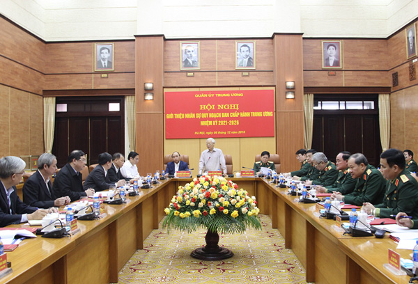 Phát biểu chỉ đạo hội nghị, đồng chí Tổng Bí thư, Chủ tịch nước, Bí thư Quân ủy Trung ương Nguyễn Phú Trọng đánh giá cao công tác bồi dưỡng, giới thiệu nhân sự cán bộ Quân đội quy hoạch Ban Chấp hành Trung ương nhiệm kỳ 2021 - 2026.