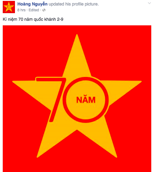 Và hôm nay, 2/9/2015, kỷ niệm 70 năm Bác Hồ đọc bản Tuyên ngôn độc lập giữa Quảng trường Ba Đình để đánh dấu thời khắc trọng đại của cả dân tộc. Các bạn trẻ cũng không thể đứng ngoài khi cả đất nước đang rộn ràng đón Tết độc lập. Ngay từ đêm qua, rất nhiều người đã đổi ảnh đại diện, cover cũng như viết status để chào mừng ngày Quốc Khánh của nước Việt Nam.