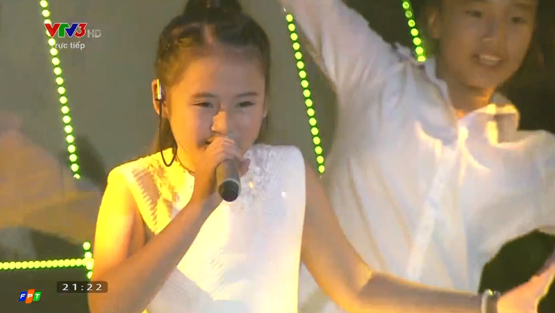 21h53: Cô bé "hạt tiêu" Hồ Thảo Nguyên team Noo Phước Thịnh là thí sinh cuối cùng trình diễn đơn ca trong liveshow 5 Giọng hát Việt Nhí 2016 với ca khúc "Mái đình làng biển" của nhạc sĩ Nguyễn Cường.