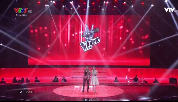 22h12: Tiết mục song ca đầu tiên của liveshow 5 The Voice Kids đến từ team Noo Phước Thịnh với liên khúc "Giếng làng - Ôi quê tôi" của nhạc sĩ Lê Minh Sơn, do Mai Anh và Khánh Ngọc thể hiện.