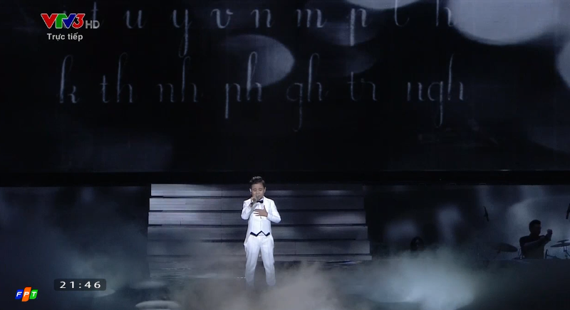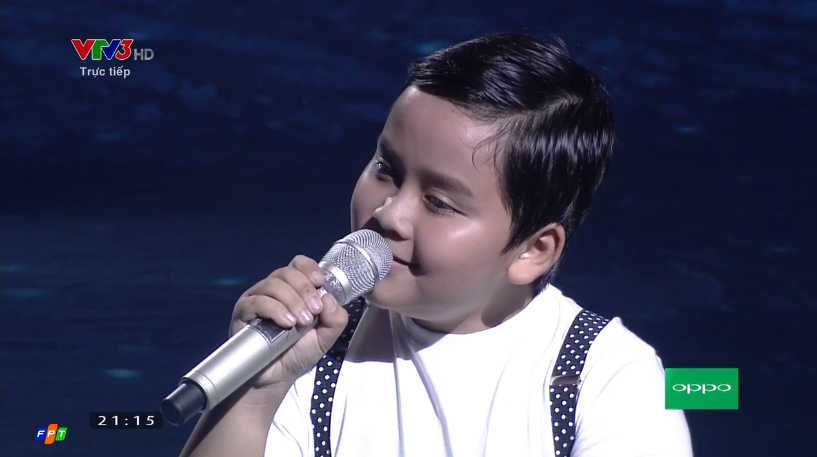 21h15: Cậu bé Đào Nguyên Thụy Bình team Vũ Cát Tường mở màn đêm liveshow 5 Giọng hát Việt Nhí 2015 với ca khúc ngọt ngào "Quê hương".