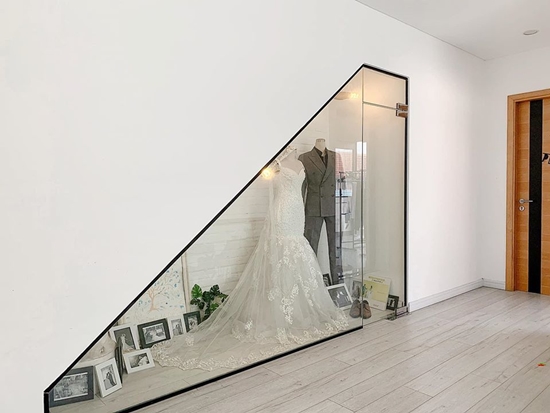 Được biết hình ảnh góc hành lang nhỏ của vợ chồng được xây dựng để chứa đựng những món đồ trong lễ cưới cách đây 7 năm. Váy cưới, đồ vest, ảnh chụp,... đều được trưng trong góc hành lang đóng khung cửa kính rất sang trọng.