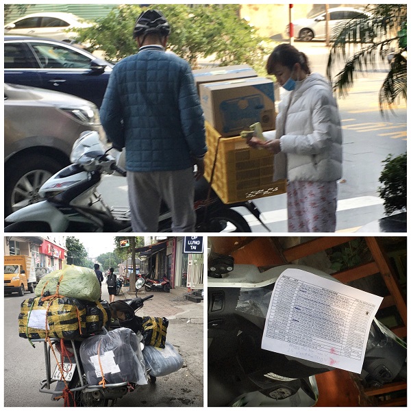 Trời đầu đông se lạnh, gương mặt của Tân vẫn nhễ nhại mồ hôi sau những chuyến xe cồng kềnh chở các thùng đầy ắp những đơn hàng. Những người làm nghề giao hàng như Tân bắt buộc lúc nào cũng phải di chuyển ngoài đường bất kể thời tiết nắng nóng hay mưa gió.