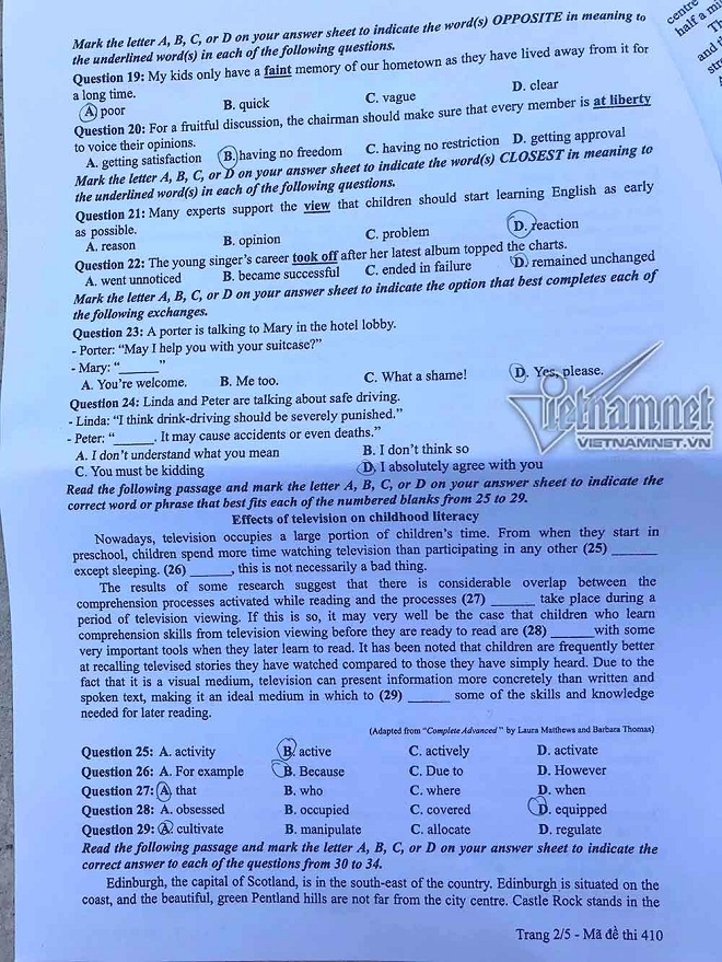 Tham khảo đề thi môn tiếng Anh THPT Quốc gia 2019: