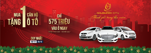 Ngoài ra, từ ngày 5/12 – 25/12, chủ đầu tư Goldmark City cũng đang triển khai chương trình ưu đãi đối với các khách hàng mua căn hộ tại khu Ruby. Cụ thể, khách hàng sẽ được nhận nhà trước, trả tiền sau với chỉ với mức đóng ban đầu 575 triệu đồng, chiết khấu cao nhất lên đến 700 triệu đồng/căn hộ. Đặc biệt, khi mua căn hộ tại khu Ruby, quý khách nhận ngay phần quà là một ô tô Misubishi MT, hoặc một ô tô Chervolet Spark Van, hoặc một bộ trang sức kim cương PNJ trị giá 120 triệu đồng.