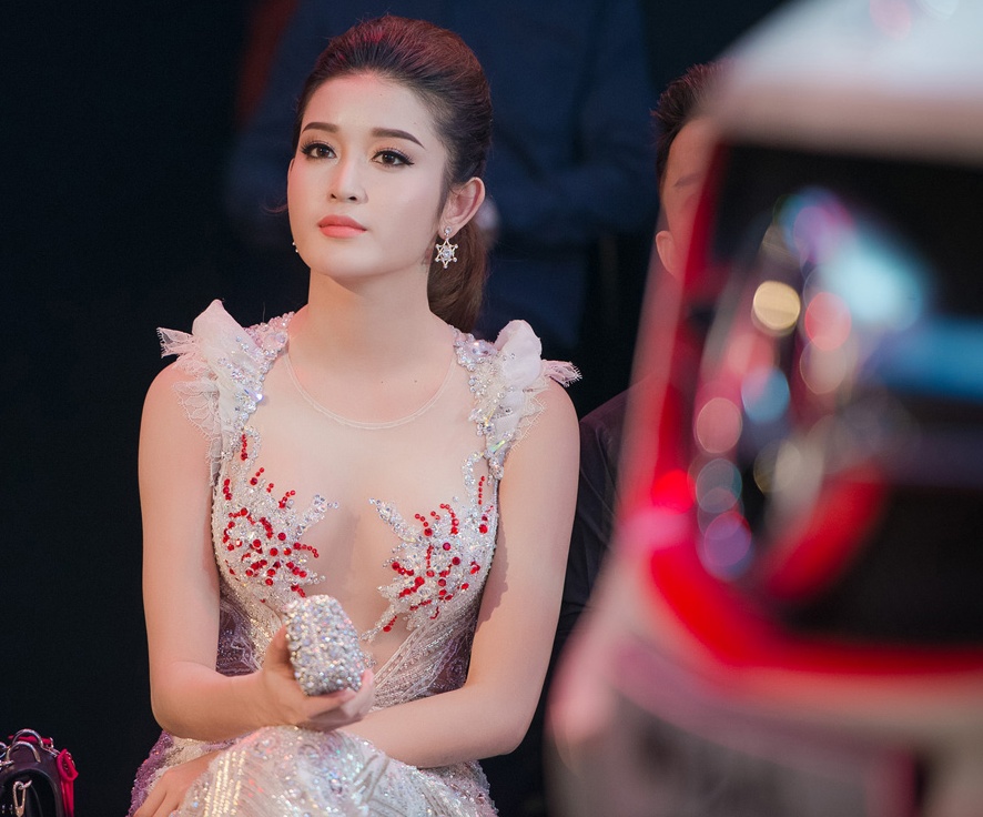 Xuất hiện trong một sự kiện vào cuối tháng 8, Huyền My thu hút ống kính truyền thông với chiếc váy dạ hội xuyên thấu màu hồng gợi cảm trễ nải vai. Người đẹp trở nên tinh tế hơn bao giờ hết khi biết chọn trang phục phô diễn được hết bờ vai trần thon gọn cùng vòng một gợi cảm của mình.
