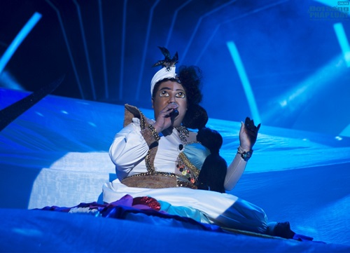 Trước khi trở về chỗ ngồi cũng các thí sinh khác, Vương Khang không quên lượn bay một vòng trong tiếng nhạc “rất Ả Rập” khiến khán giả không ngớt tiếng vỗ tay ngợi khen.