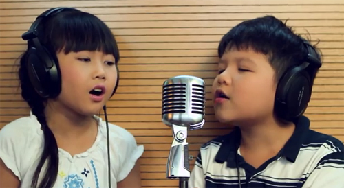 | Các thí sinh nhí hát trong MV Đứa bé. (ảnh chụp từ clip). |