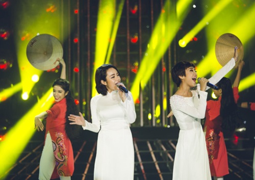 Hai khách mời là Thái Trinh- Tiêu Châu Như Quỳnh cũng xuất hiện trong tà áo dài trắng với ca khúc Tôi yêu, mang đến một không khí sôi động cho khán phòng.