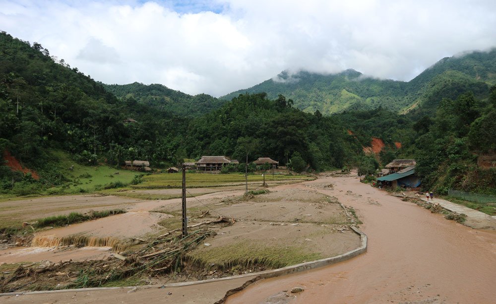 Khoảng 65 ha lúa chuẩn bị cho thu hoạch bị đất đá vùi lấp, lũ cuốn trôi 2 con trâu, 11 con dê, 20 con lợn, trên 450 con gia cầm… Mưa lũ cũng gây lở ta-luy dương tuyến đường từ Quốc lộ 279, đoạn từ xã Yên Thành vào trung tâm xã Bản Rịa, tổng chiều dài tuyến hơn 1,2 km, khối lượng đất đá sạt lở trên 10.000m3.