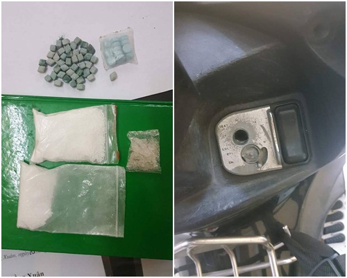 Thời điểm kiểm tra, hai đối tượng tỏ ra lo lắng. Cán bộ tổ công tác phát hiện phần ổ khóa của xe đã bị đục phá (nghi là xe tang vật của một vụ trộm). Tiếp tục kiểm tra, phát hiện bên trong túi xách mà hai đối tượng mang theo có 1 túi ni-lông chứa nhiều gói nhỏ. Qua kiểm đếm, tổ công tác xác định có 2 gói chứa chất bột màu trắng (nghi là ketamin), 1 gói ni-lông chứa chất tinh thể màu trắng (nghi ma túy đá), 1 gói chứa 13 viên nén màu xanh (nghi ma túy tổng hợp) và 1 gói chứa 44 viên nén hình tứ giác (nghi ma túy tổng hợp).