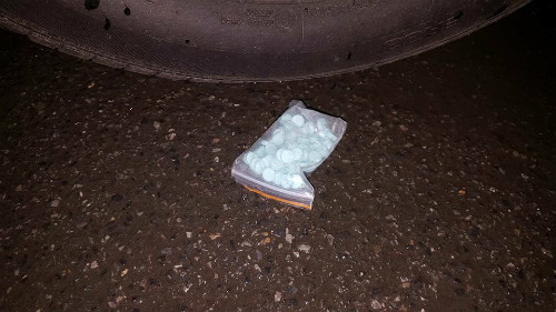 Ngay khi bị tổ công tác ra hiệu lệnh dừng xe kiểm tra, 1 trong 5 đối tượng ngồi trên xe đã ném gói ni-lông có chứa 100 viên thuốc lắc hòng phi tang.