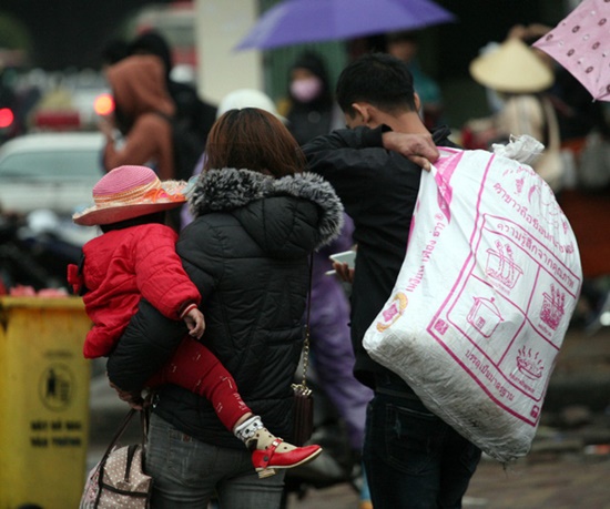 | Các gia đình "tay xách nách mang" về quê nghỉ tết. Ảnh: GĐ&XH |