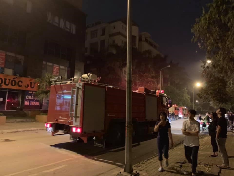 | Xe phòng cháy chữa cháy có mặt tại vụ hỏa hoạn ở chung cư CT2, Hà Đông |