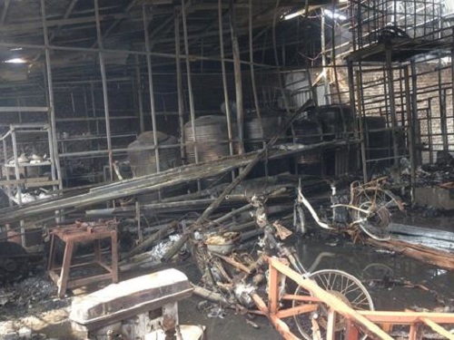 Lửa đã thiêu rụi nhiều đồ đạc trong các quán ăn, nhà xưởng. Ảnh: báo An ninh thủ đô |