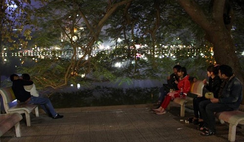 | Nhiều đôi phải ngồi ghế đá tâm sự. |