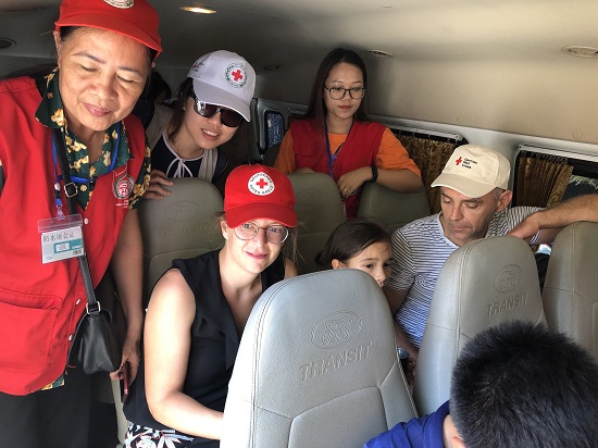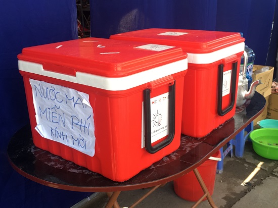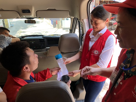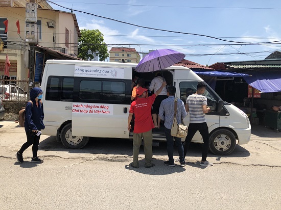 Hội Chữ thập đỏ Việt Nam phối hợp với Hội Chữ thập đỏ Hà Nội triển khai mô hình tránh nóng bằng xe buýt lưu động giúp người lao động xua đi mệt mỏi khi làm việc dưới tiết trời nắng nóng gay gắt.