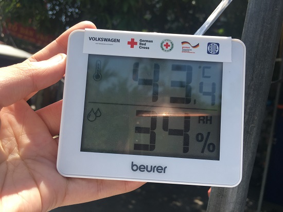 Nhiệt độ ngoài trời có những lúc lên đến 43 độ C. |