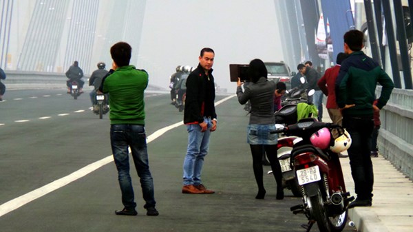 Còn trong sáng ngày 9/1, ghi nhận của PV trên cầu Nhật Tân cho biết, dù nhiệt độ ngoài trời trên cầu Nhật Tân dưới 10 độ C nhưng có nhiều phương tiện ô tô, xe máy vẫn dừng đỗ trên cầu để tham quan, chụp ảnh.