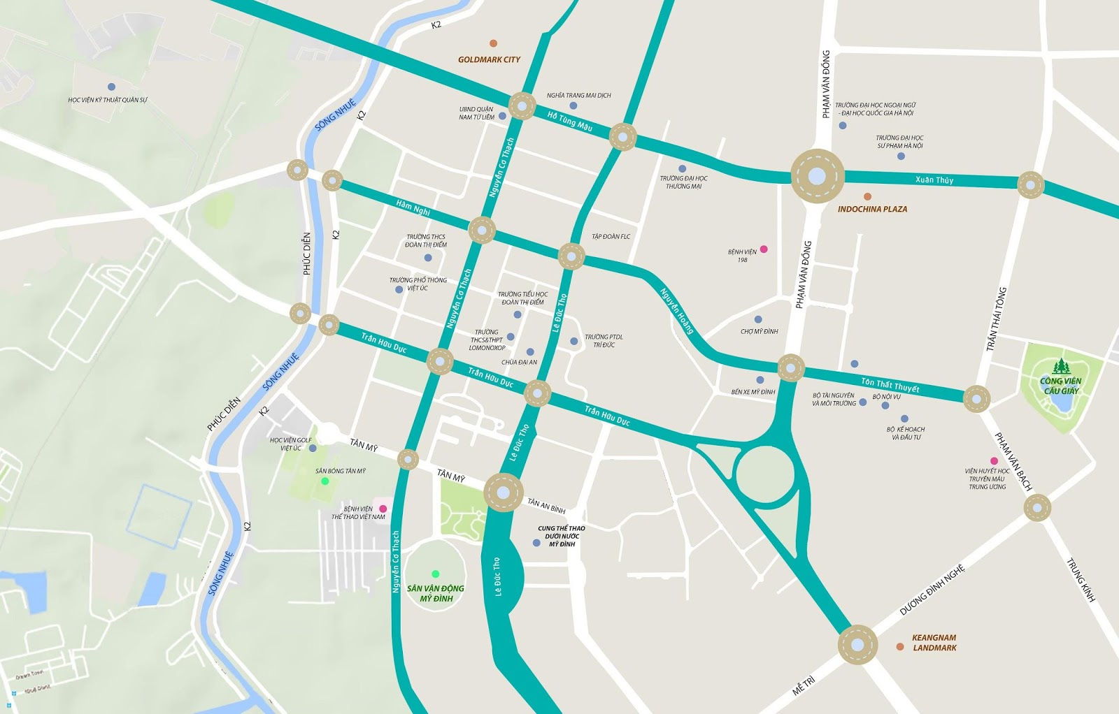 Hạ tầng giao thông chính là lợi thế nổi bật hàng đầu của khu vực Mỹ Đình. Nhờ hệ thống đường sá được đầu tư, mở rộng, nâng cấp, cải thiện không ngừng cùng mạng lưới đường nhỏ được quy hoạch vuông như bàn cờ, việc di chuyển, kết nối tới khu vực này trở nên vô cùng thuận lợi. Ngoài các tuyến giao thông huyết mạch Vành đai 3, Quốc lộ 32, Lê Đức Thọ, Mễ Trì, Trần Hữu Dực, Nguyễn Cơ Thạch… Mỹ Đình còn có tuyến xe bus nhanh BRT và tuyến đường sắt trên cao Nhổn – Ga Hà Nội chạy qua. Do đó, dù là khu vực kết nối các tuyến đường trọng điểm của thành phố nhưng giao thông tại Mỹ Đình tương đối thuận lợi, đặc biệt là các tuyến đường Lê Đức Thọ, Hàm Nghi, Trần Hữu Dực,... hầu như không xảy ra tình trạng tắc nghẽn.